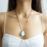 Our Amazonite Necklace combines the natural beauty of genuine Amazonite gemstones with the rustic charm of leather. Each necklace features a one-of-a-kind Amazonite stone, celebrated for its calming energy and said to promote clarity, balance, and communication.