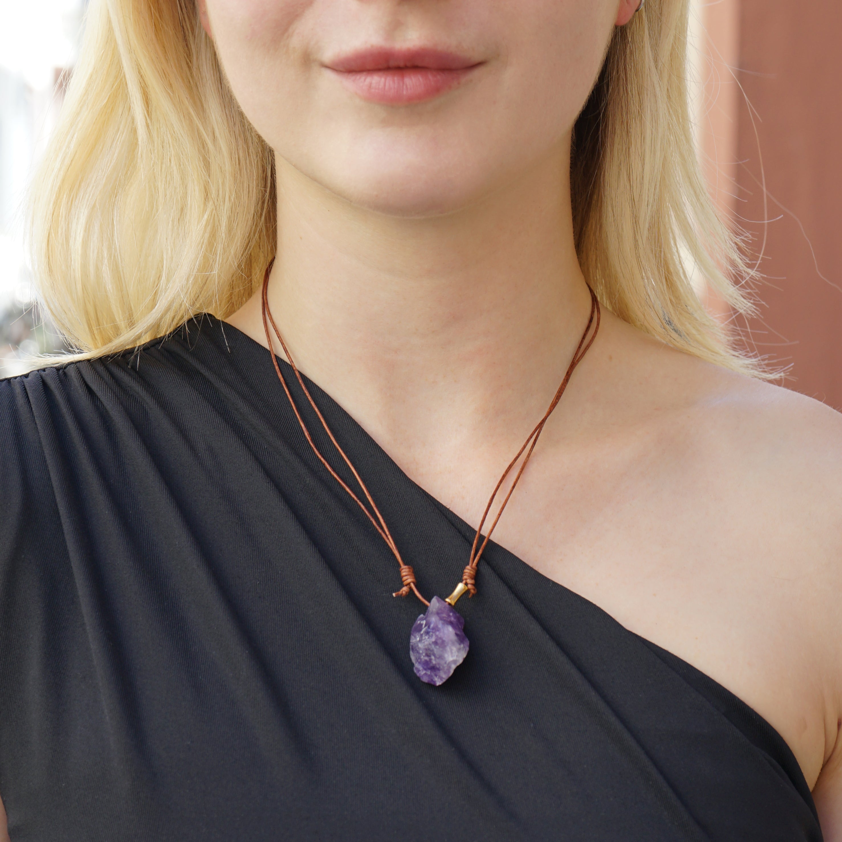 This handcrafted amethyst necklace combines genuine leather with a stunning, one-of-a-kind amethyst gemstone, celebrated for its calming, protective energy. Known as the "stone of tranquility," amethyst is believed to promote balance, encourage clarity, and inspire inner peace.