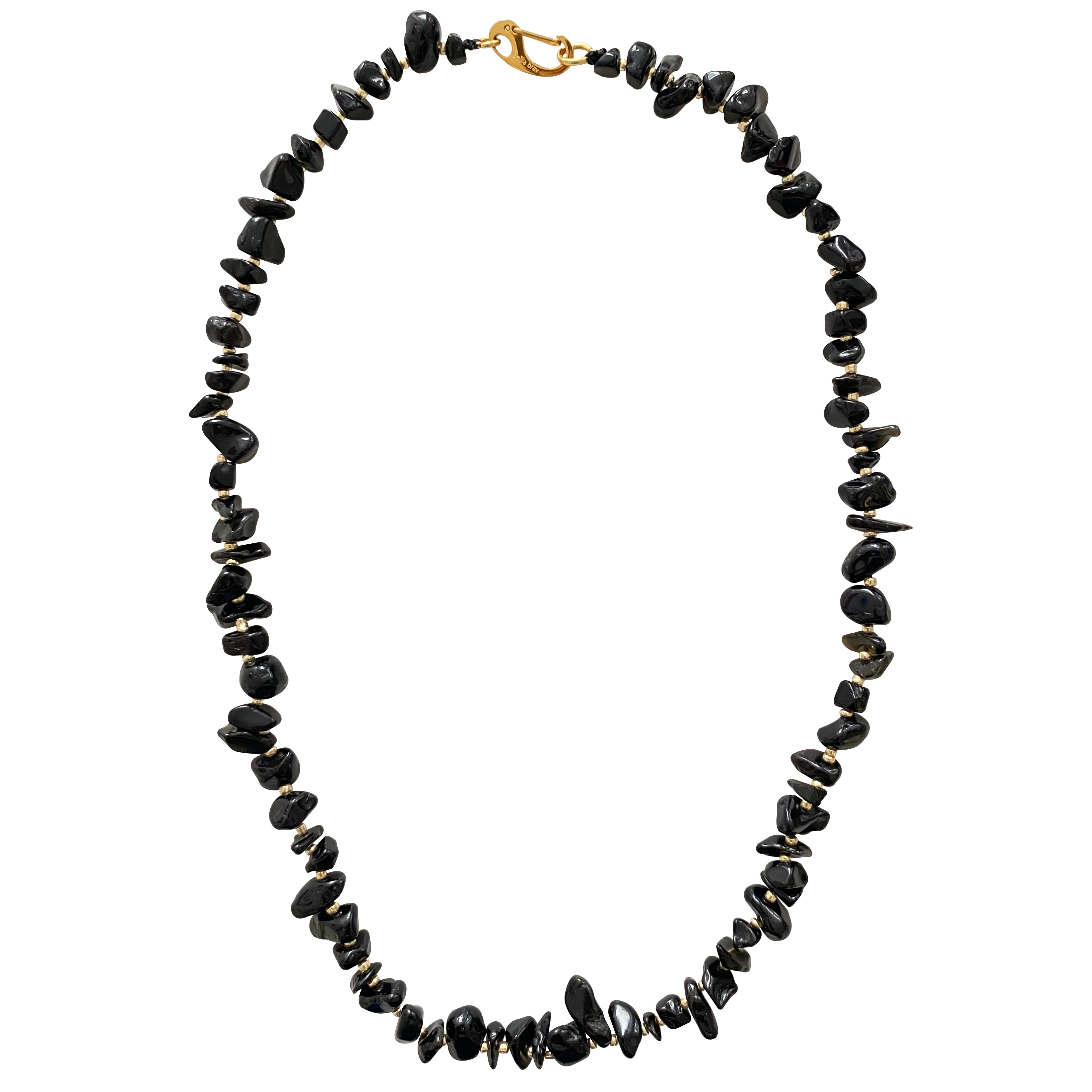 Elegant and grounding — the Noir Onyx Necklace is crafted from natural onyx stones, known for their deep black hue and protective energy. Each irregular bead is hand-selected and accented with subtle gold details, creating a refined yet organic silhouette.