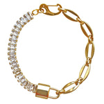 Our tennis bracelet Rue is made of gold-plated stainless steel and glass clear zirconias.